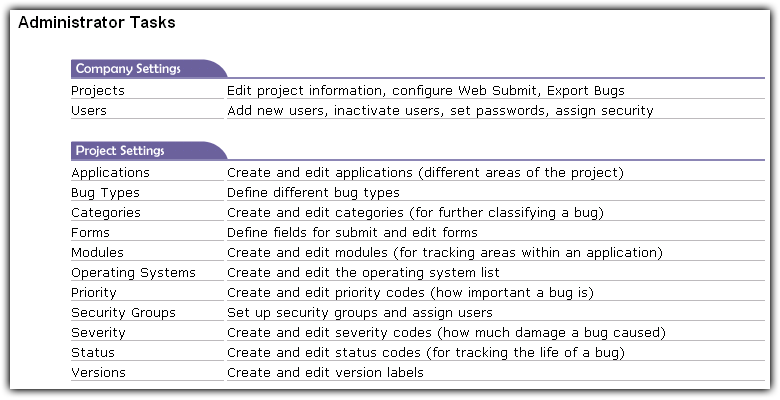 BugHost prepares your account with some default settings so that you may start working quickly,
